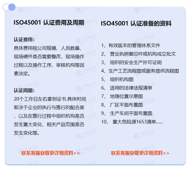 ISO45001认证周期、费用、资料: